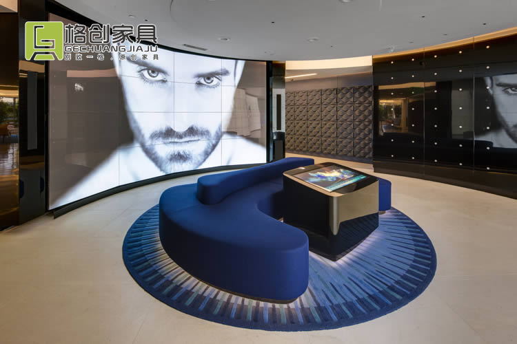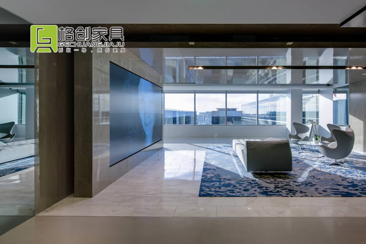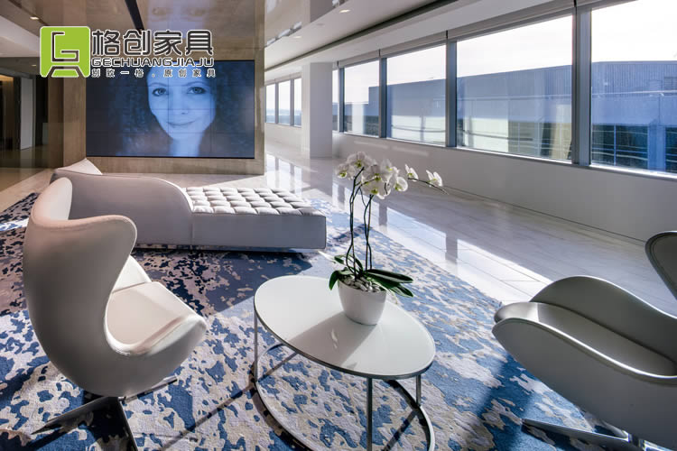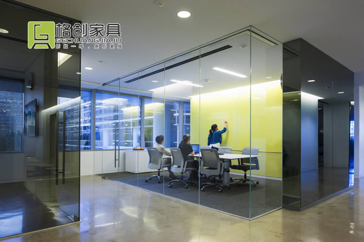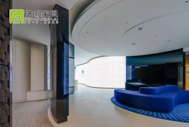會議室也是采用同款風(fēng)格的辦公家具,不過這里除了黑色和白色之外,還墻壁和地板都采用了藍(lán)色色調(diào),更有利于員工冷靜頭腦,在這能夠獲得更好的開會效果。