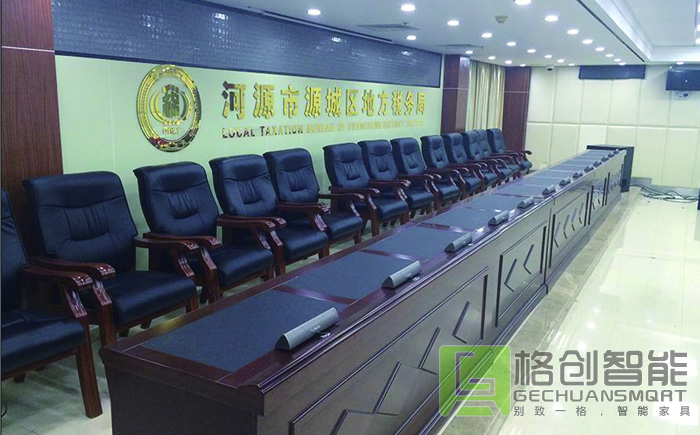 格創(chuàng)智能為河源市源城區(qū)地方稅務局設計的無紙化會議室,采用了智能升降一體機含電子桌牌,使用現(xiàn)代通訊技術、音頻技術、視頻技術、軟件技術,通過文件的電子交換實現(xiàn)會議的無紙化。其特征是:文件傳輸網(wǎng)絡化,文件顯示電子化,文件編輯智能化,文件輸入輸出可控化。