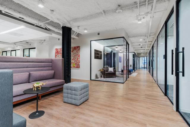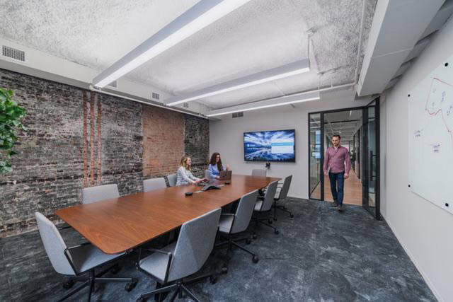 協(xié)作空間占據(jù)了大半的空間面積,從休閑到正式、從1人到12人之多的各種規(guī)模的空間應(yīng)有盡有。每間會(huì)議洽談室都配有視頻會(huì)議系統(tǒng),讓員工與全球各地的客戶和團(tuán)隊(duì)成員隨時(shí)隨地高效合作。