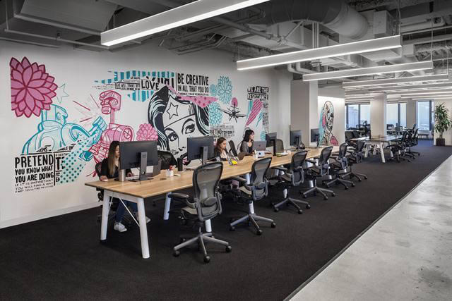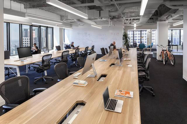 創(chuàng)始人的堅(jiān)定信念注定公司會(huì)實(shí)現(xiàn)超高速增長(zhǎng),因此設(shè)計(jì)需要最大化空間利用率,以靈活應(yīng)對(duì)未來(lái)增長(zhǎng)需求。并與家具商合作定制設(shè)計(jì)工作臺(tái),挑選符合設(shè)計(jì)意圖的現(xiàn)代而有趣的辦公家具。長(zhǎng)條形辦公桌是個(gè)很不錯(cuò)的選擇,可隨意增加或減少人員。