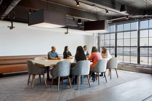 BSE Global(前布魯克林體育娛樂公司),是一家在紐約地區(qū)開發(fā)和經(jīng)營體育賽事和體育特許經(jīng)營的公司。本案是其位于紐約布魯克林的總部辦公空間設(shè)計及辦公家具應(yīng)用案例,室內(nèi)設(shè)計由設(shè)計公司TPG Architecture 團隊打造。設(shè)計利用拋光的混凝土地面和裸露的結(jié)構(gòu)頂面,以精致而樸素的工業(yè)美學(xué)語言去再現(xiàn)工業(yè)建筑真實而原始的美學(xué)特質(zhì),塑造BSE Global文化品牌空間。